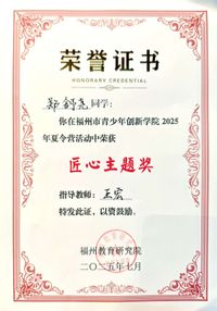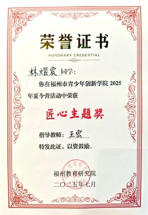 为进一步提升青少年的科学素养,激发他们的创新精神,福州市青少年创新学院于7月15-17日在福州市科技馆举办了2025年科创夏令营。夏令营由福州教育研究院、福州市青少年创新学院主办。经规范选拔,我校林熠宸、郑舒尧、朱一涵三位同学参加了本次夏令营活动。