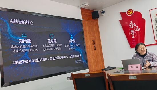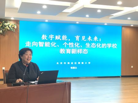 活动伊始,北京市海淀区翠微小学教育集团党委书记张国立以《数字赋能育见未来》为题,从“坚守教育初心”出发,系统阐述了翠微小学在推动学校教育整体数字化转型方面的战略思考与实践经验,为我校管理团队及教师带来了一场如何以人工智能技术驱动教育模式变革的精彩分享。