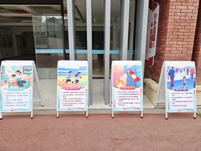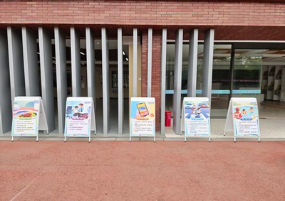 在校内,学校通过宣传栏、电子屏等多渠道进行全覆盖安全教育宣传。围绕交通安全、防溺水、食品安全、反诈骗、网络安全、防火安全等重点领域,精心设计的海报与提示标语在校园各处醒目展示,同步通过校门口大屏幕滚动播放,持续强化学生的安全防范意识,让安全教育融入日常校园生活。